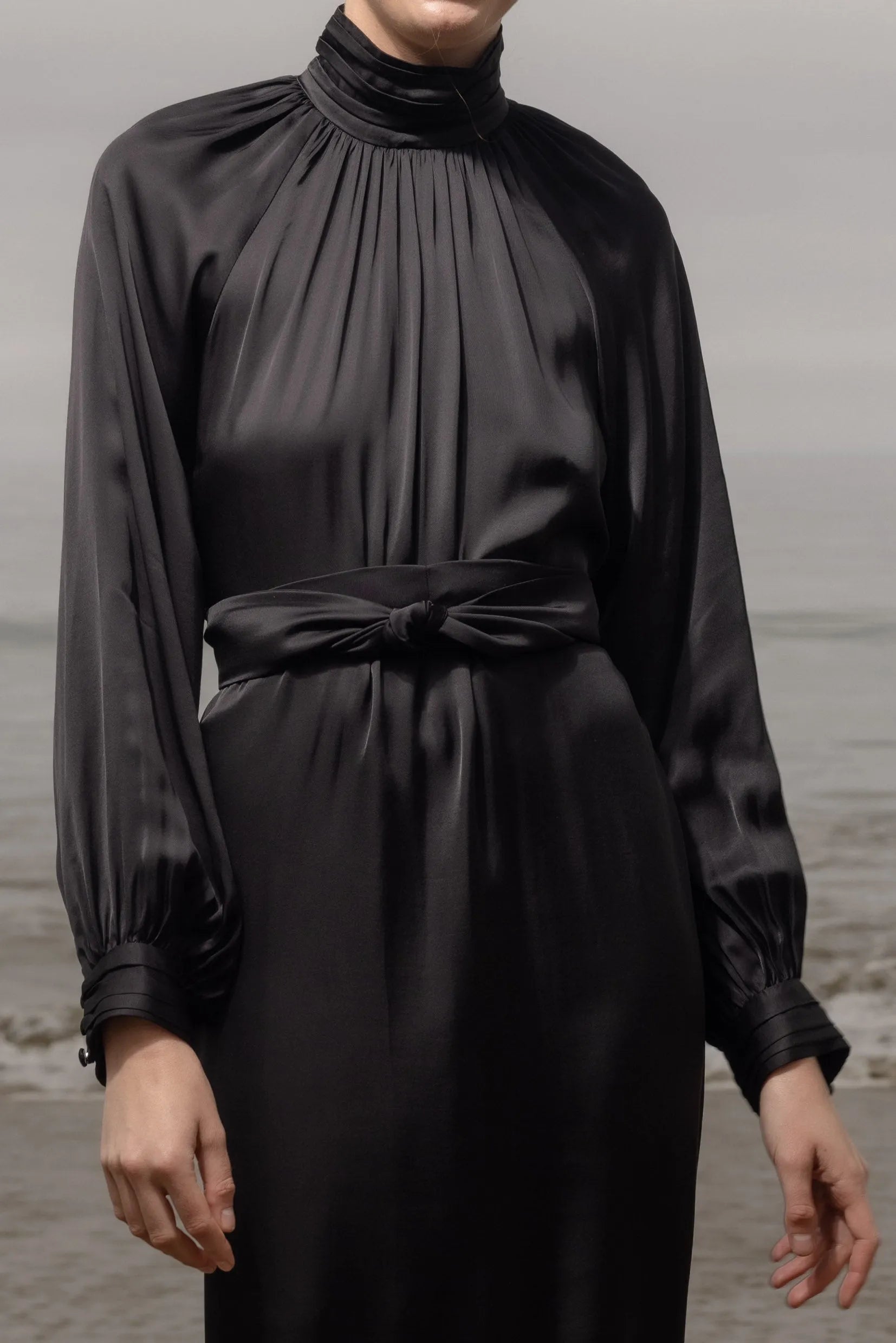 Use a steamer and avoid the iron, to keep the natural flow and essence of the piece.