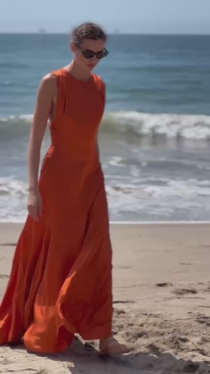 Reissued in celebration of our 20-year anniversary, the Gale Gown is a timeless silhouette reimagined in fluid viscose. The gown features a flowing tiered skirt, a fitted bodice, and a graceful back design with a covered button and loop closure for a refined finish. A side zip and subtle waist detail create a flattering, sculptural shape that moves beautifully with the body.