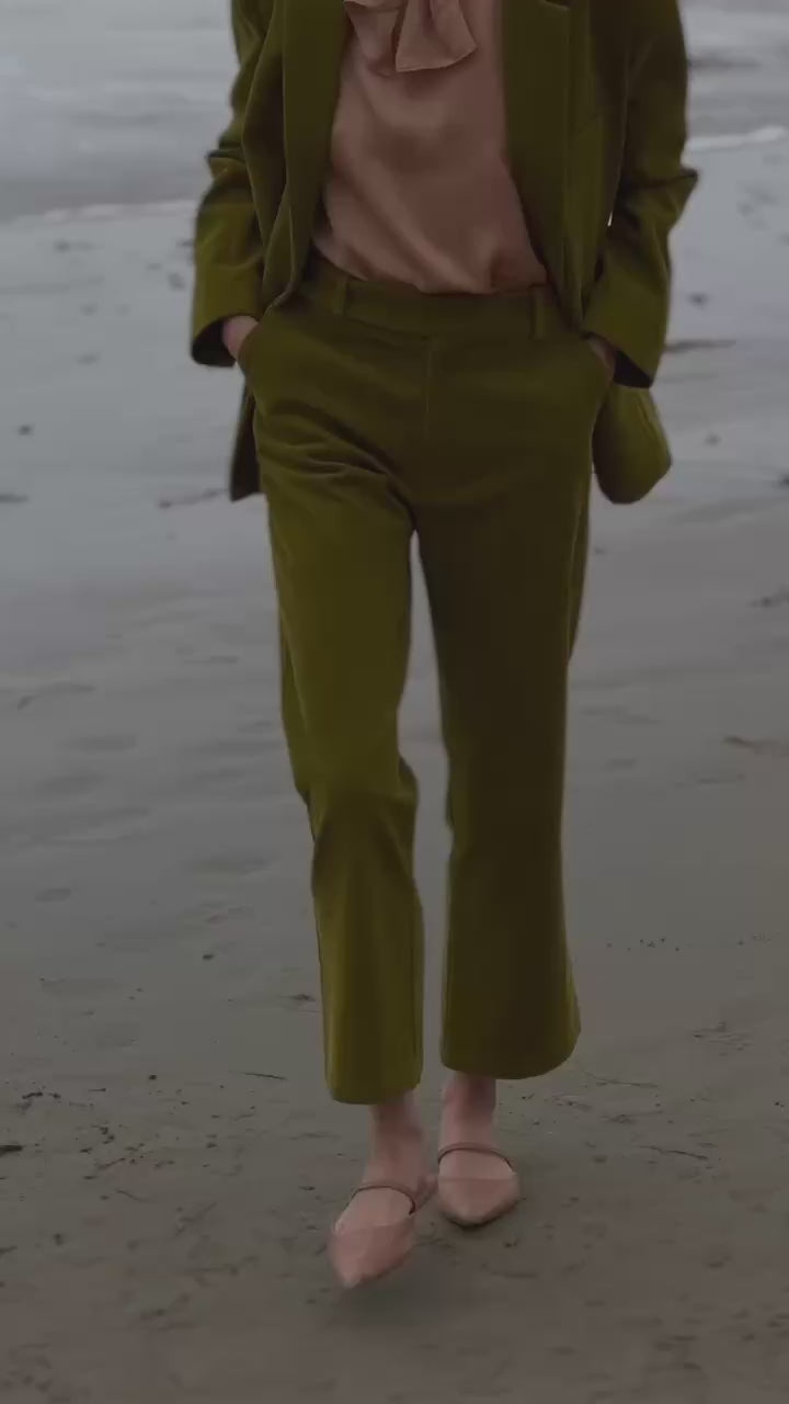 An ankle-length trouser with a slight flare, the Serge Pant is a playful update to the classic silhouette. Featuring a mid-rise fit, straight & flared slim leg, and cheeky midi length, it’s detailed with a wrap-over waistband like our Baptise Pant and finished with back welt pockets. The Serge brings a modern twist.