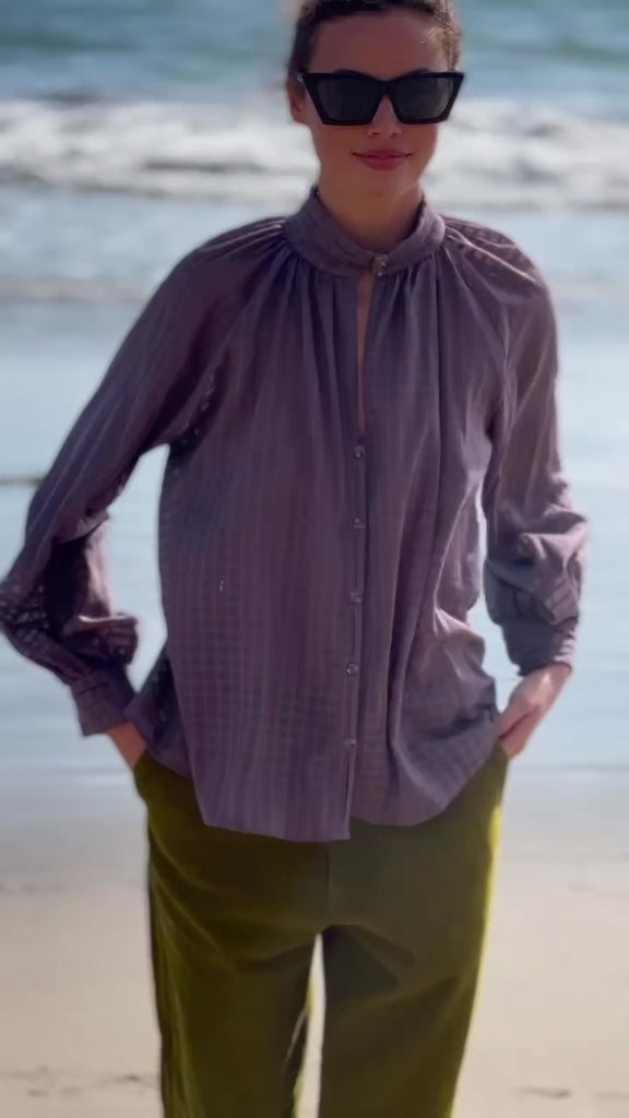 Use a steamer and avoid the iron, to keep the natural flow and essence of the piece.