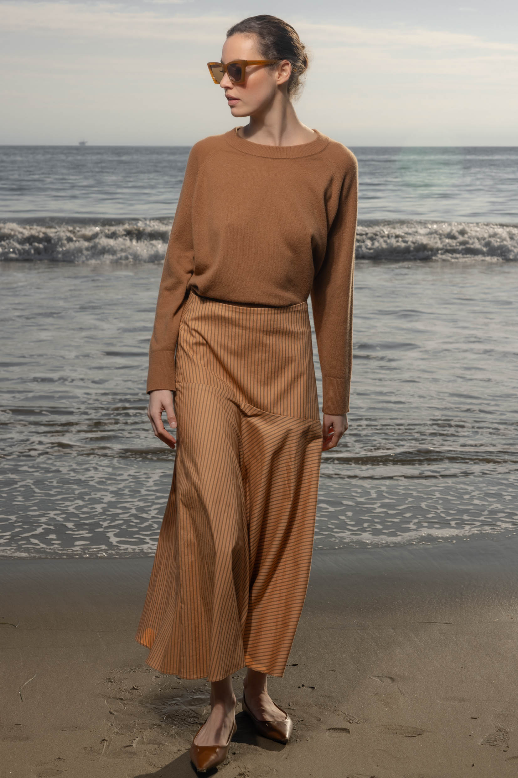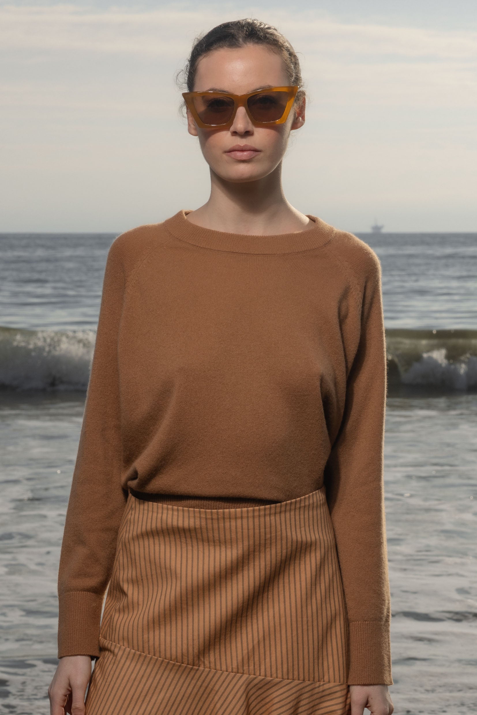 The Daily Sweater is made from a soft cashmere, with a classic raglan sleeve and ribbed neckline. Why the daily sweater? It’s the perfect crewneck, the perfect length, it’s lightweight and cashmere. It’s the type of thing you’ll wear going to the grocery store or with a skirt to a black tie event. Once you start wearing this sweater, you’re going to want to wear it on the daily. It's lightweight, California cashmere, it's the year round staple.