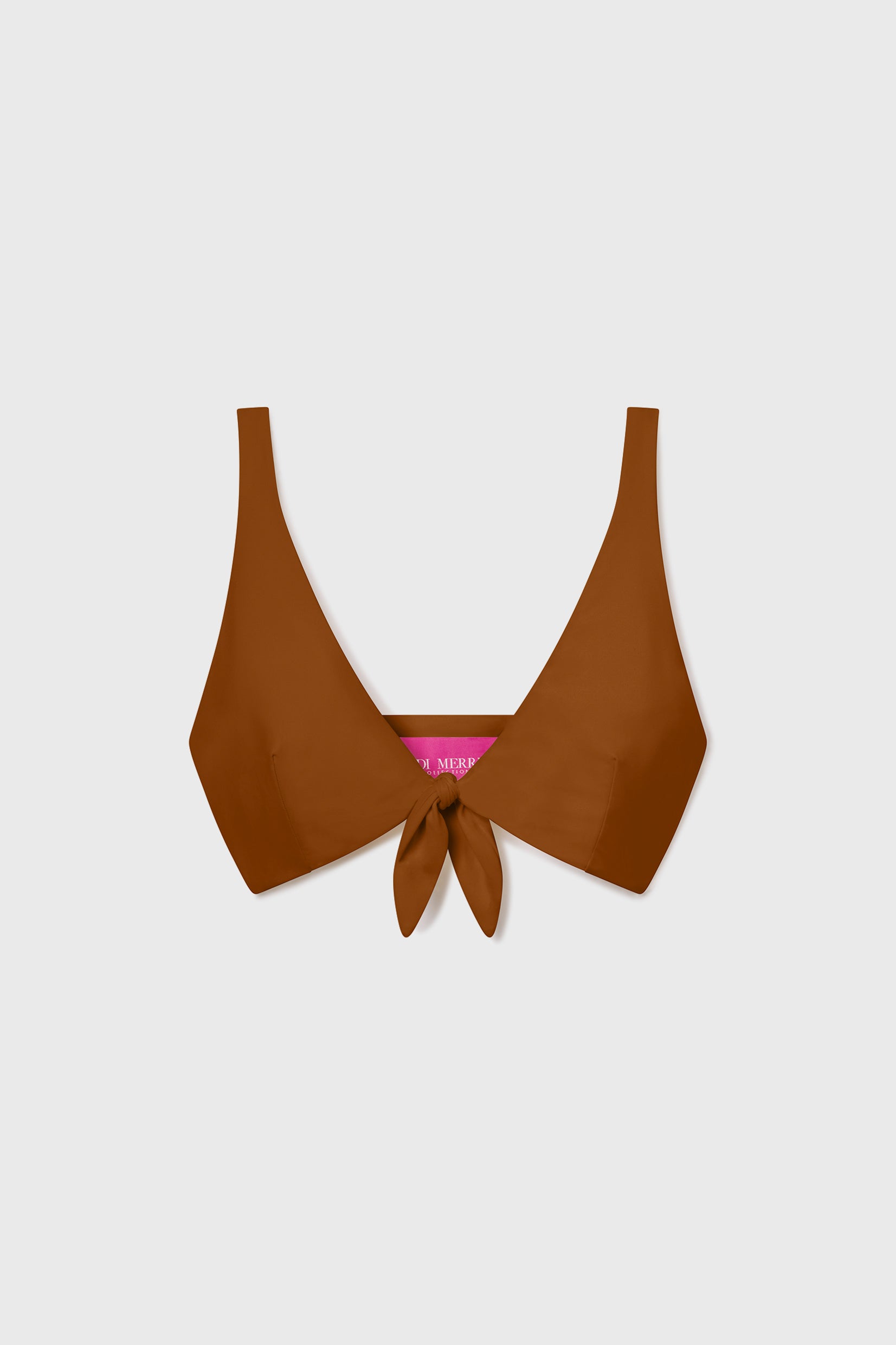 Named after Heidi's mom, the Terry Top is a bralette style shape exuding a moment of the coastal 60's style that we all aspire to emit. With a small dart on the center bust and a center front tie, it has a sweet and supportive fit. Thin straps connect to the back for light structure.