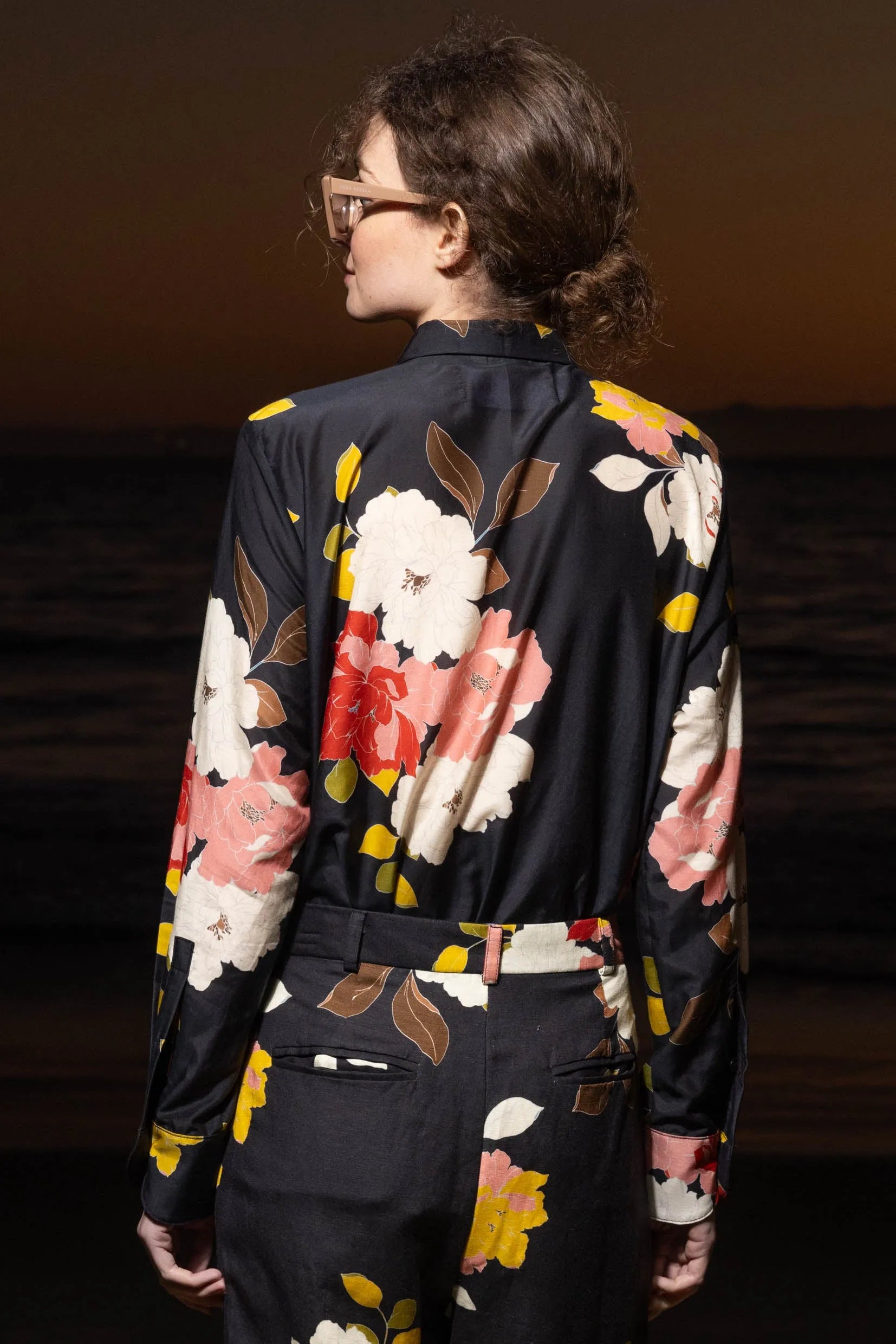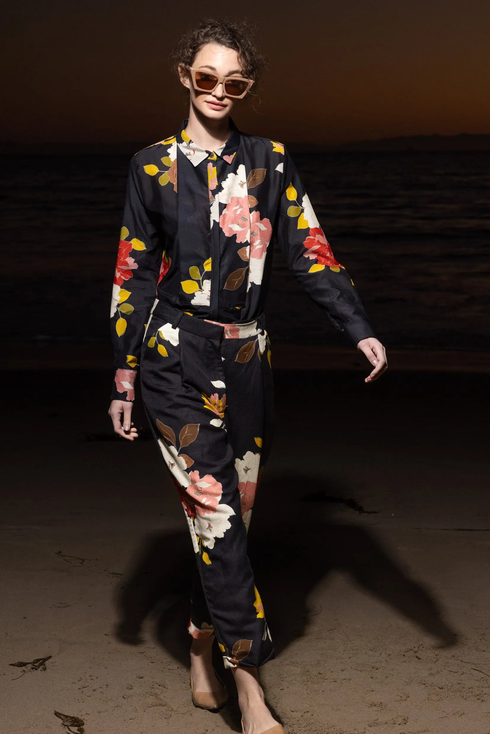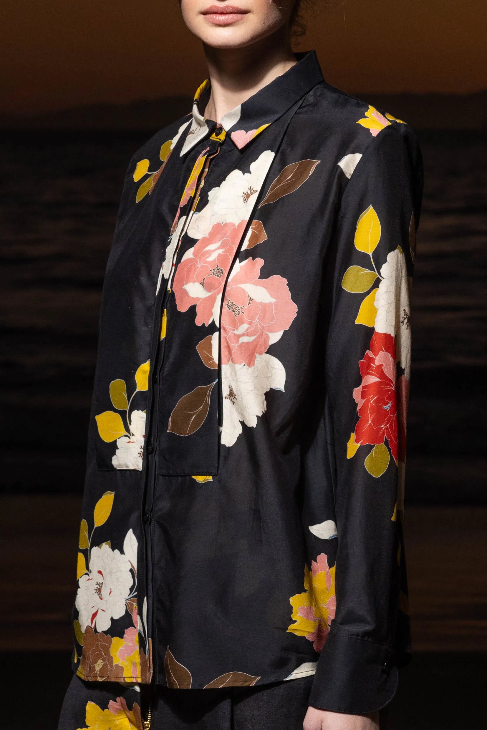The AMI Tux Top is a classic, fitted, button up, collared blouse with our signature tux front detail. In English Rose this blouse brings a bold moment to your every day.