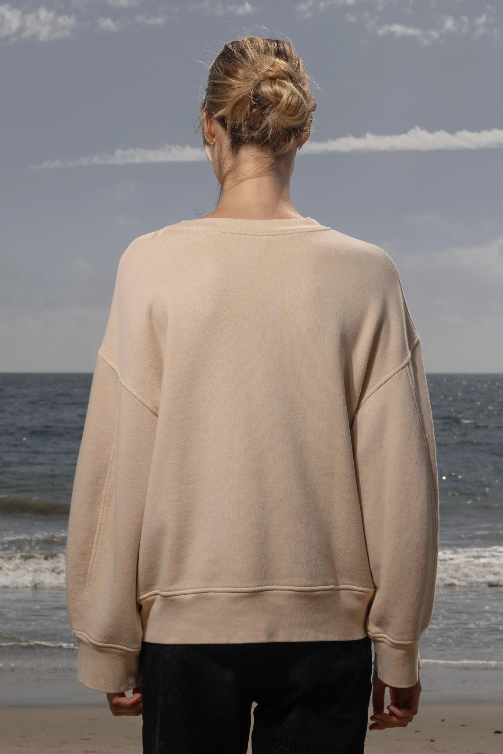 Made entirely in Los Angeles, the Barrel Sleeve Crewneck is designed in a locally knitted hemp viscose diagonal French terry. It features a barrel-shaped sleeve and long rib trim, creating a cool, oversized shape that still feels refined. Finished with our 70's SRF LA logo embroidered small on the chest, it’s a timeless sweatshirt redefined by Los Angeles craftsmanship.