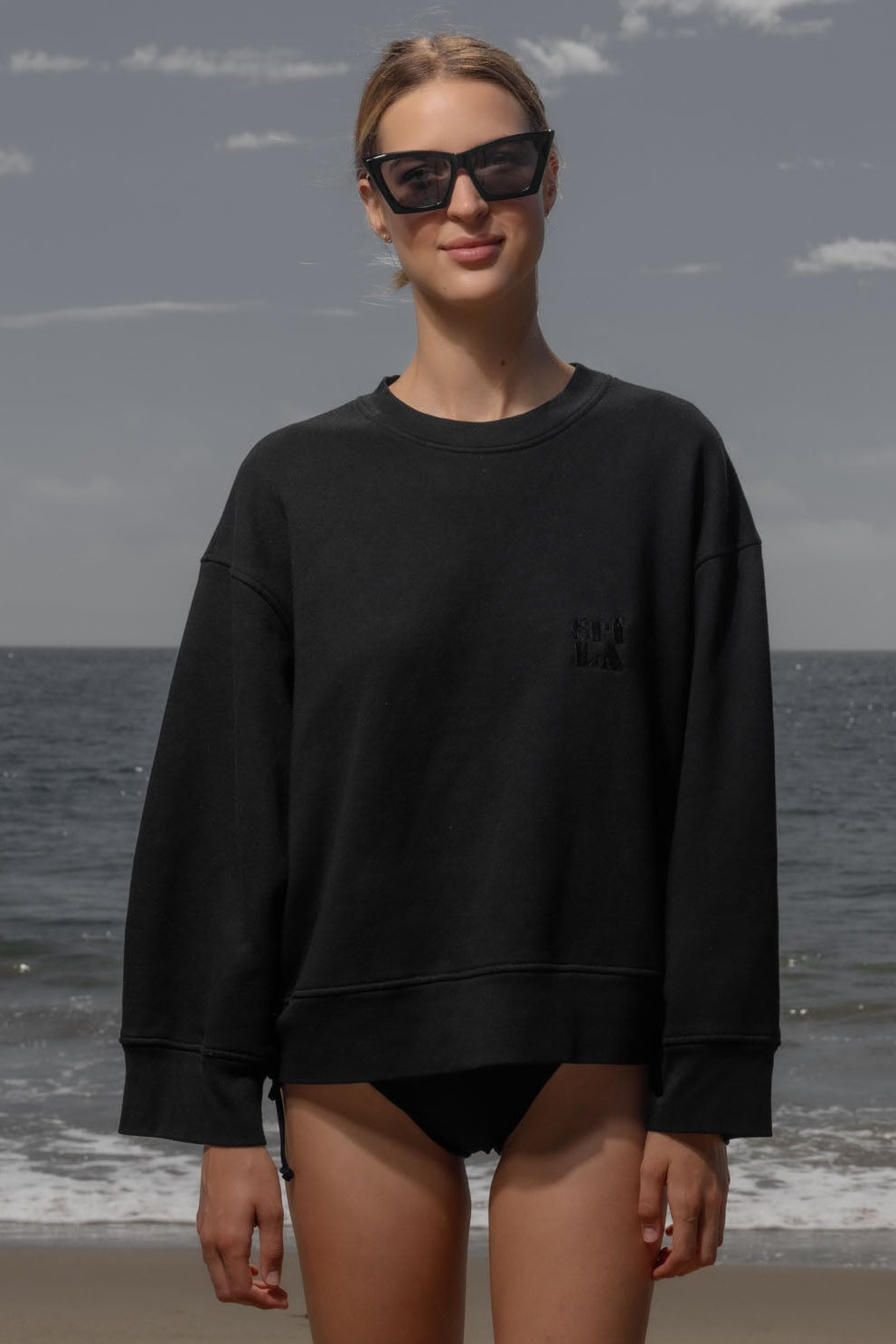 Barrel Sleeve 70's SRF LA Crewneck - Black Embroidered - Heidi Merrick