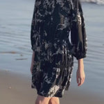 Use a steamer and avoid the iron, to keep the natural flow and essence of the piece.