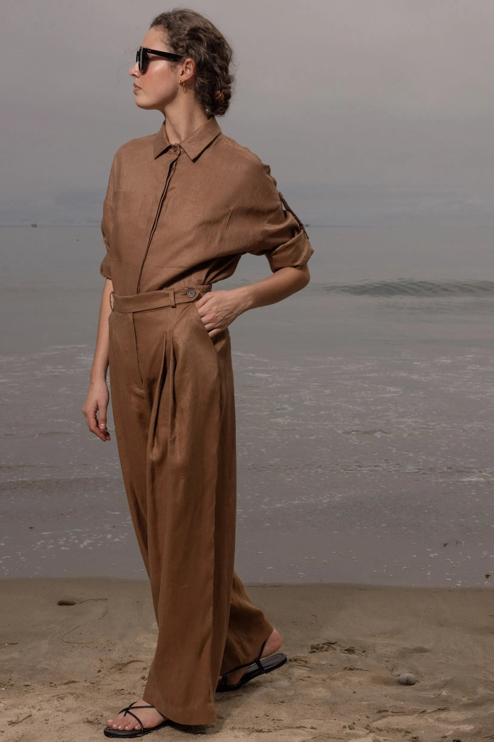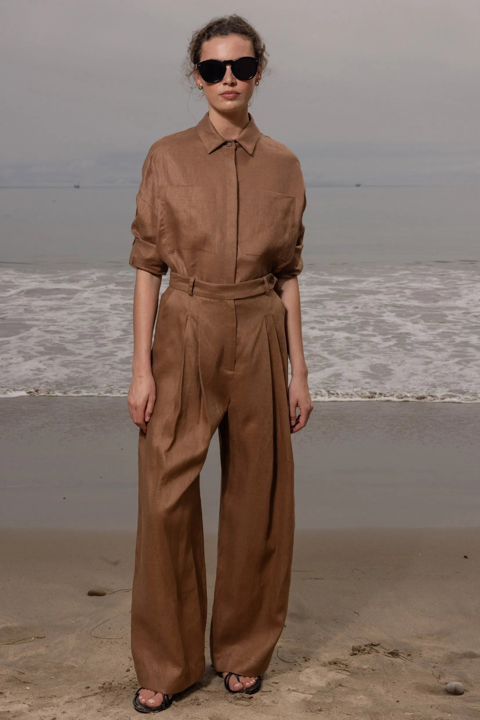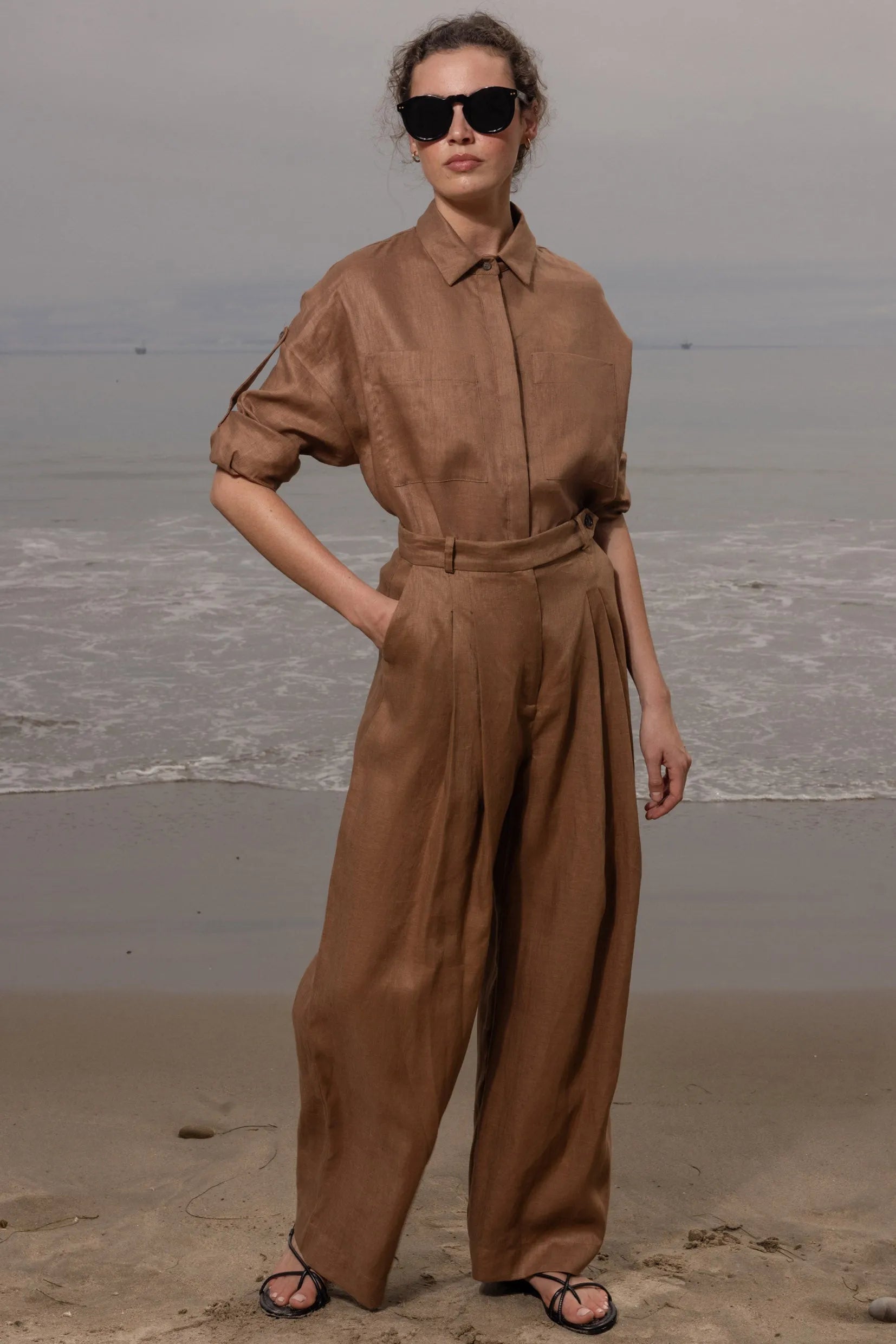 The Chaplin Pant is a very loose and very cool trouser, the tailoring is perfection. With a wide leg, this pleated & darted trouser offers a high waisted fit you will love. Offered in our bottom weight linens, there’s a current sophistication to this pant that elevates any silhouette.