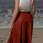 The CONTESSA Skirt is a high waisted, box pleated masterpiece of tailoring and casual cool. Left zip entry and low sloan pickets make it easy to wear with a tee or sweater; or be very 1920's and throw on a wool blazer. This skirt levels up your everyday. In our Silk & Hemp Fabrication, its refined yet earthy.