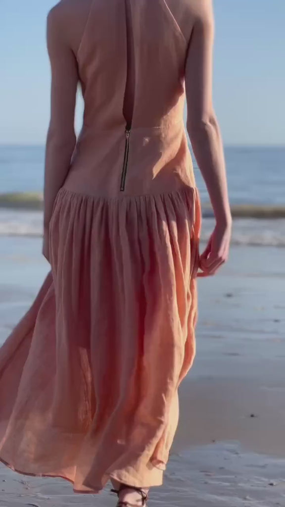 Reissued in celebration of our 20-year anniversary, the Gale Gown is a timeless silhouette reimagined in fluid viscose. The gown features a flowing tiered skirt, a fitted bodice, and a graceful back design with a covered button and loop closure for a refined finish. A side zip and subtle waist detail create a flattering, sculptural shape that moves beautifully with the body.