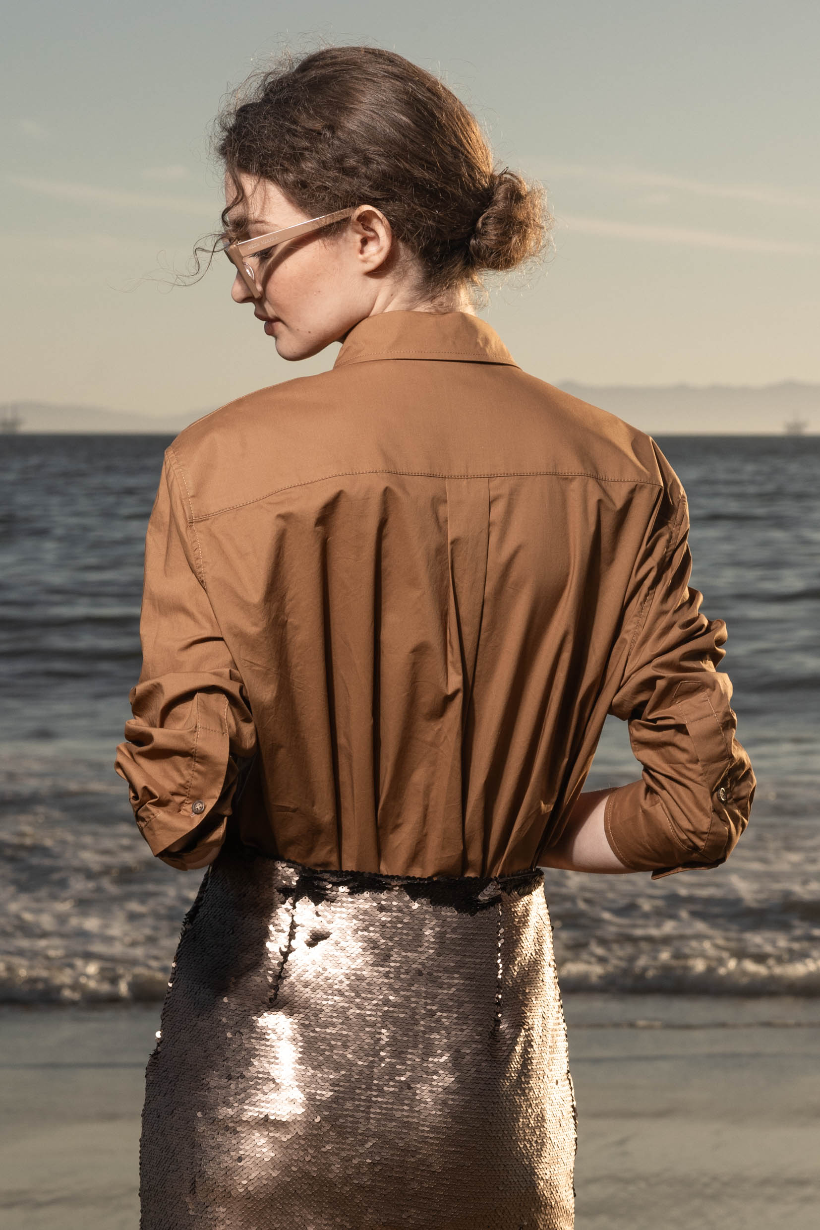 The JJ Shirt is your classic, oversized, mens fit, button down shirt. Darted sleeve, yoke, and a pleated back. You'll feel just like you're wearing your husband’s shirt, but the arms fit just so, and you can button up the collar for that hot 80’s vibe.