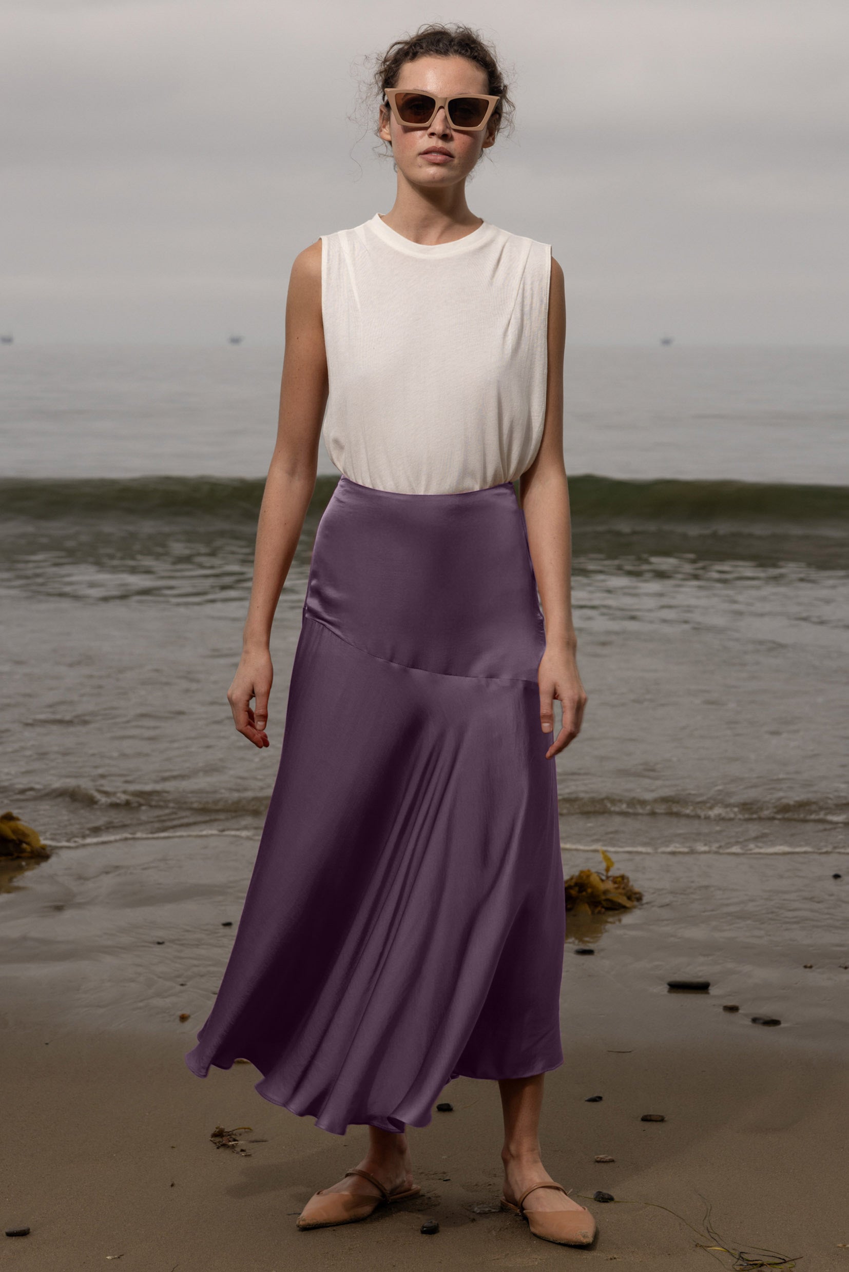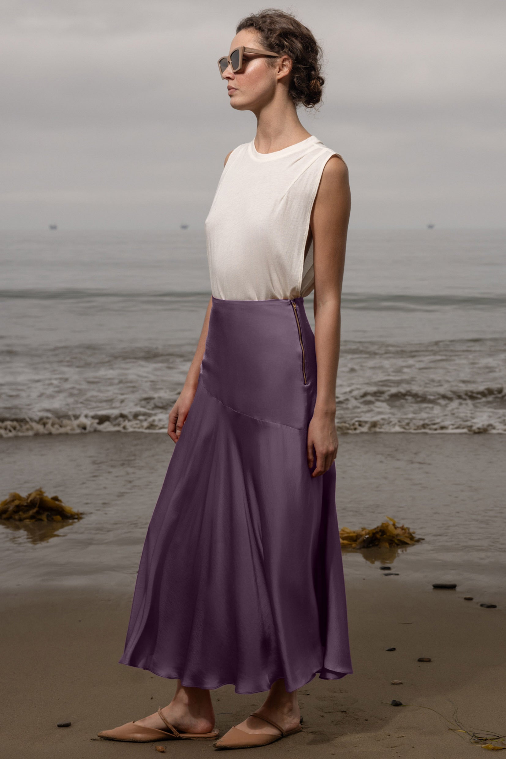 The Kite Skirt is designed with a sweeping yoke that flatters the hip and flows into a full circle skirt for beautiful movement. Finished with a side zip for ease, it’s an elegant evening piece with endless versatility. With its graceful drape and timeless silhouette, it pairs effortlessly with everything from structured tops to soft knits, making it a staple for every occasion.