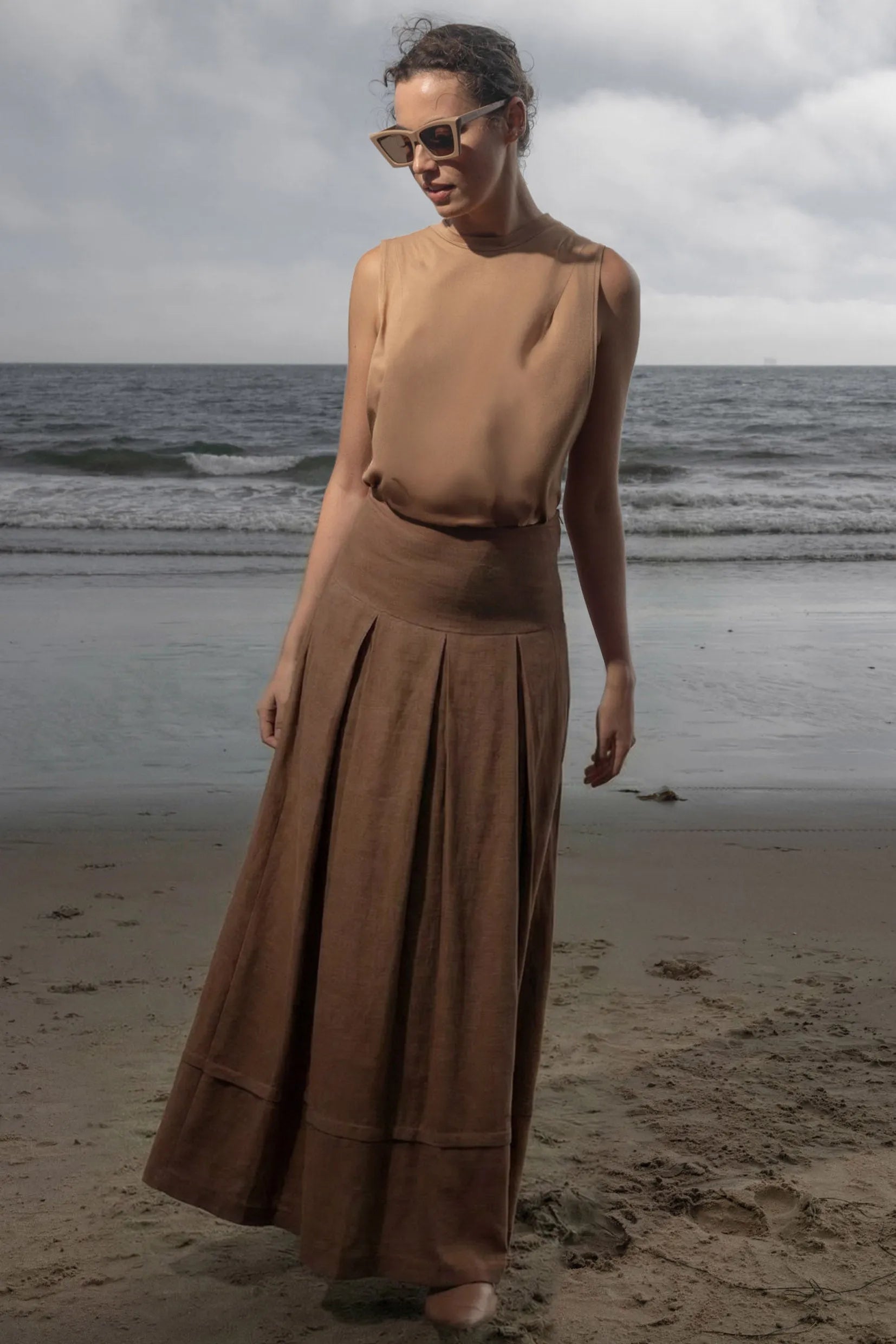 Marbella Skirt - Clay Tissue Linen - Heidi Merrick