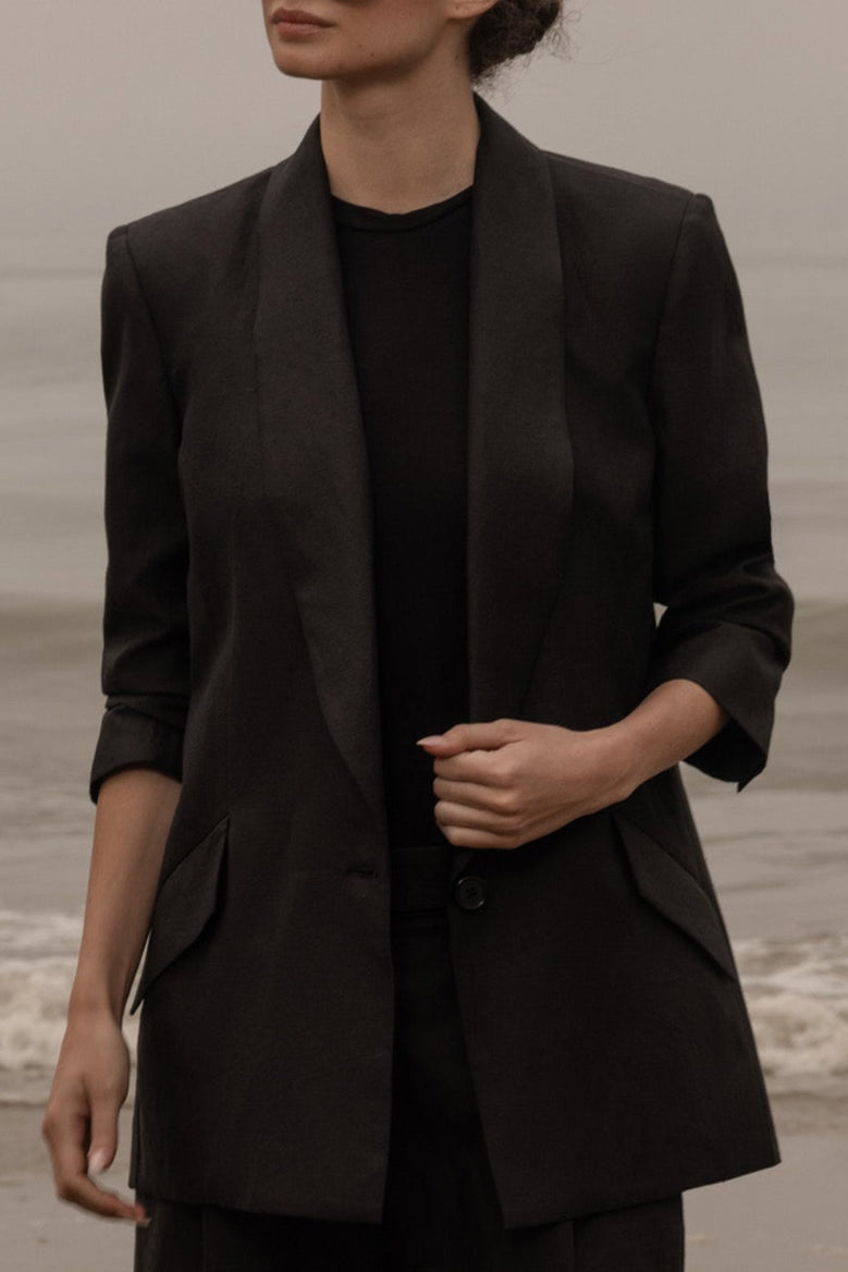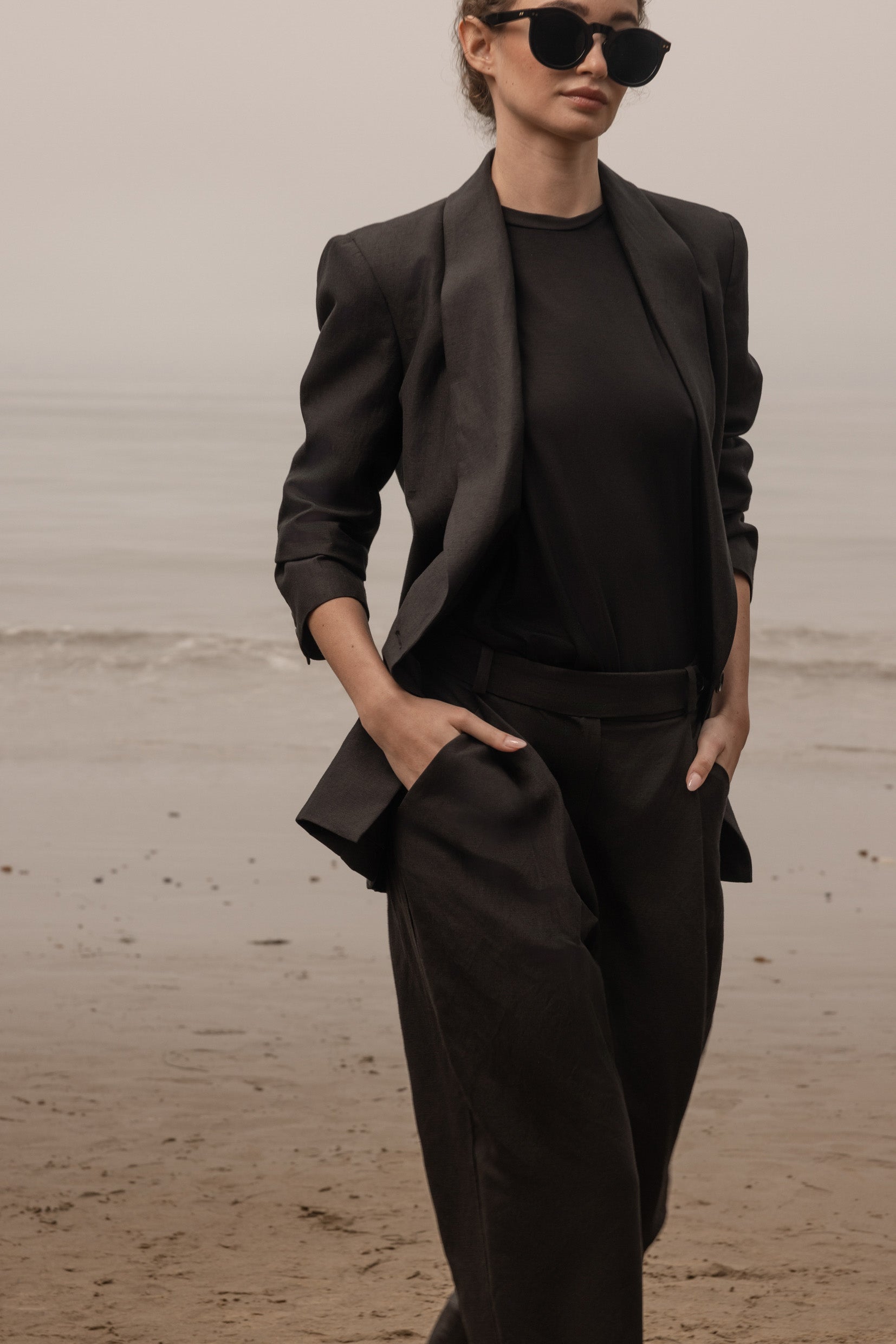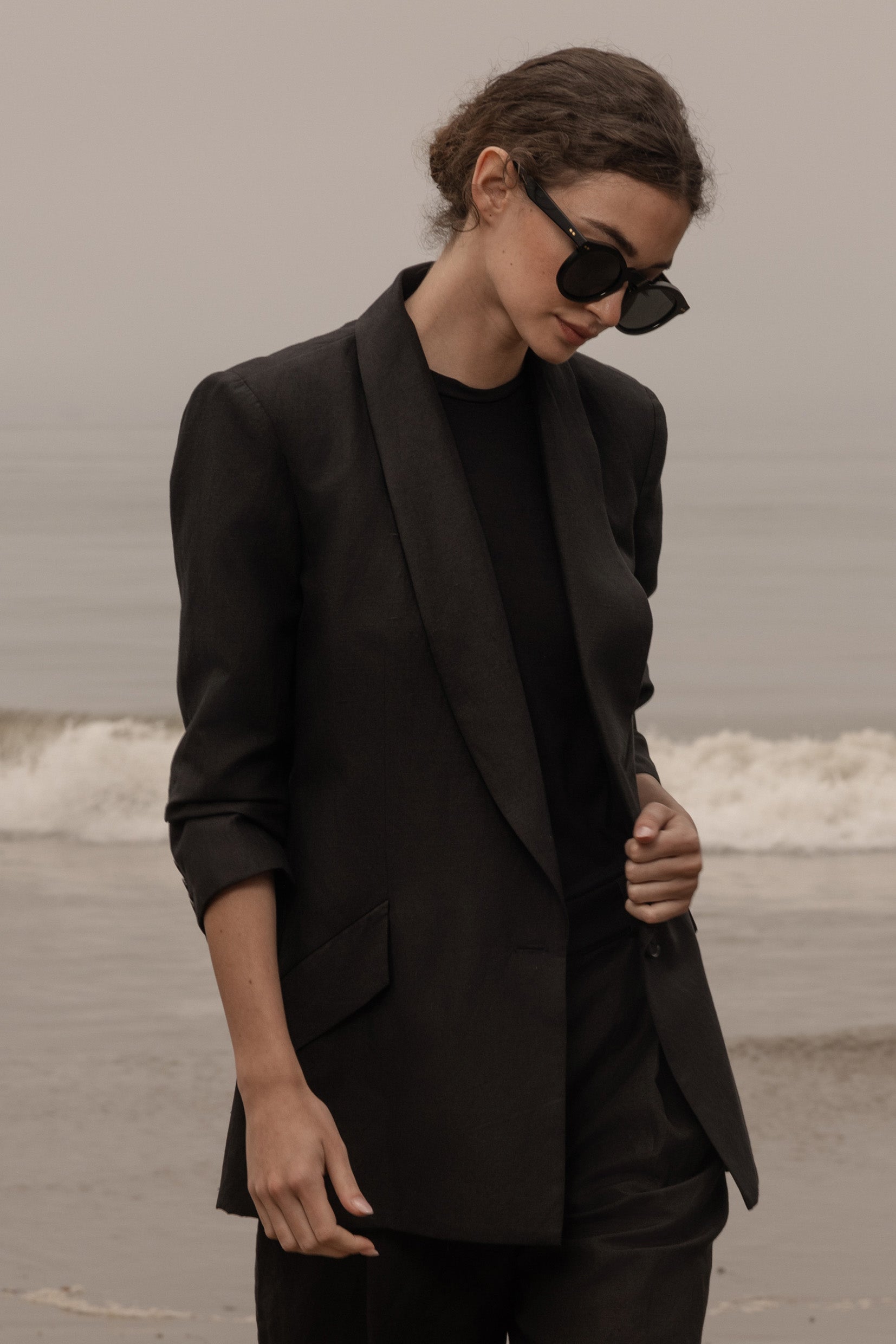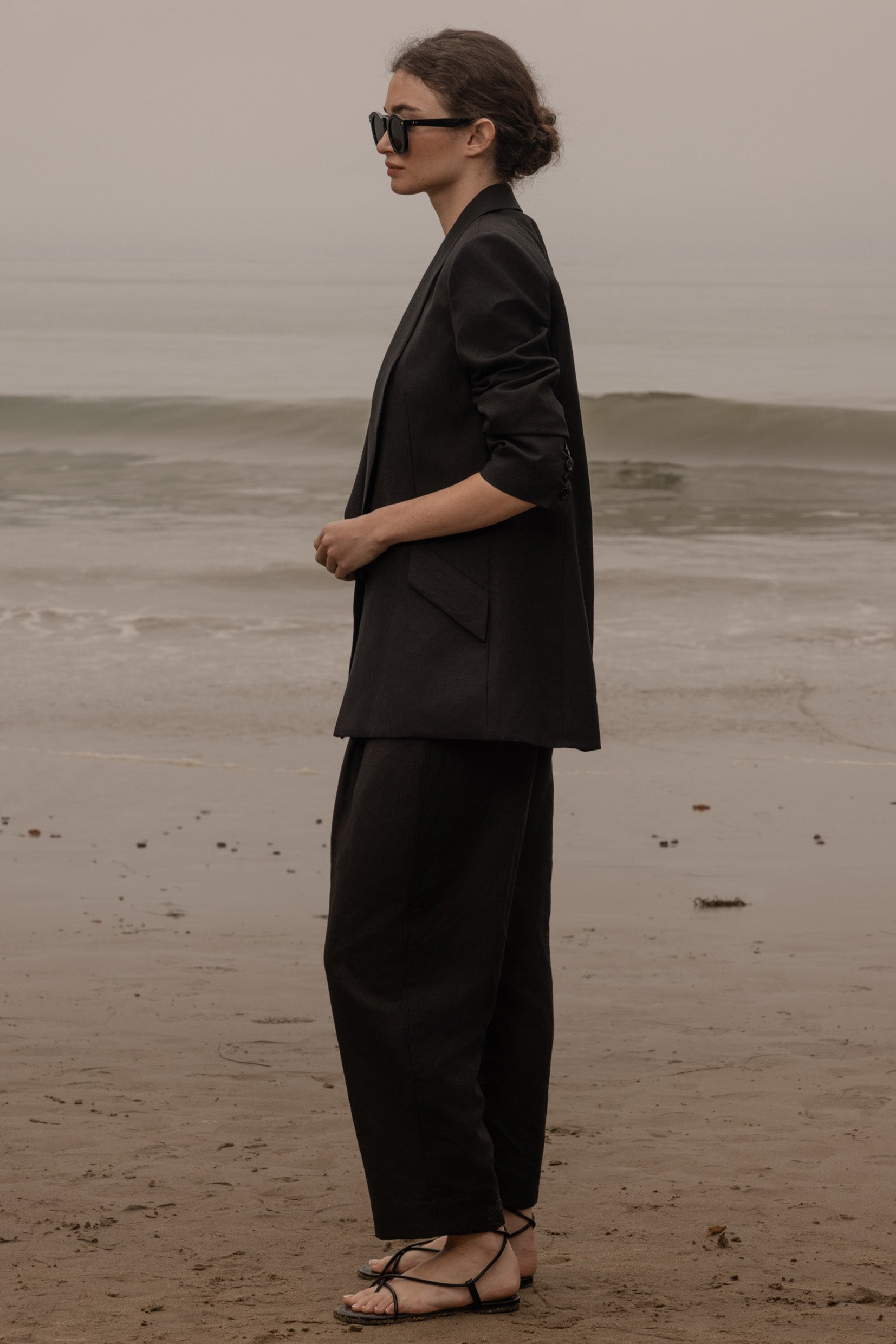 Zelda Blazer - Noir Silk & Hemp - Heidi Merrick