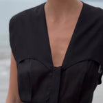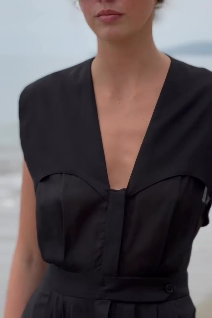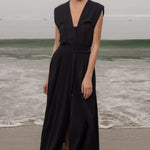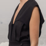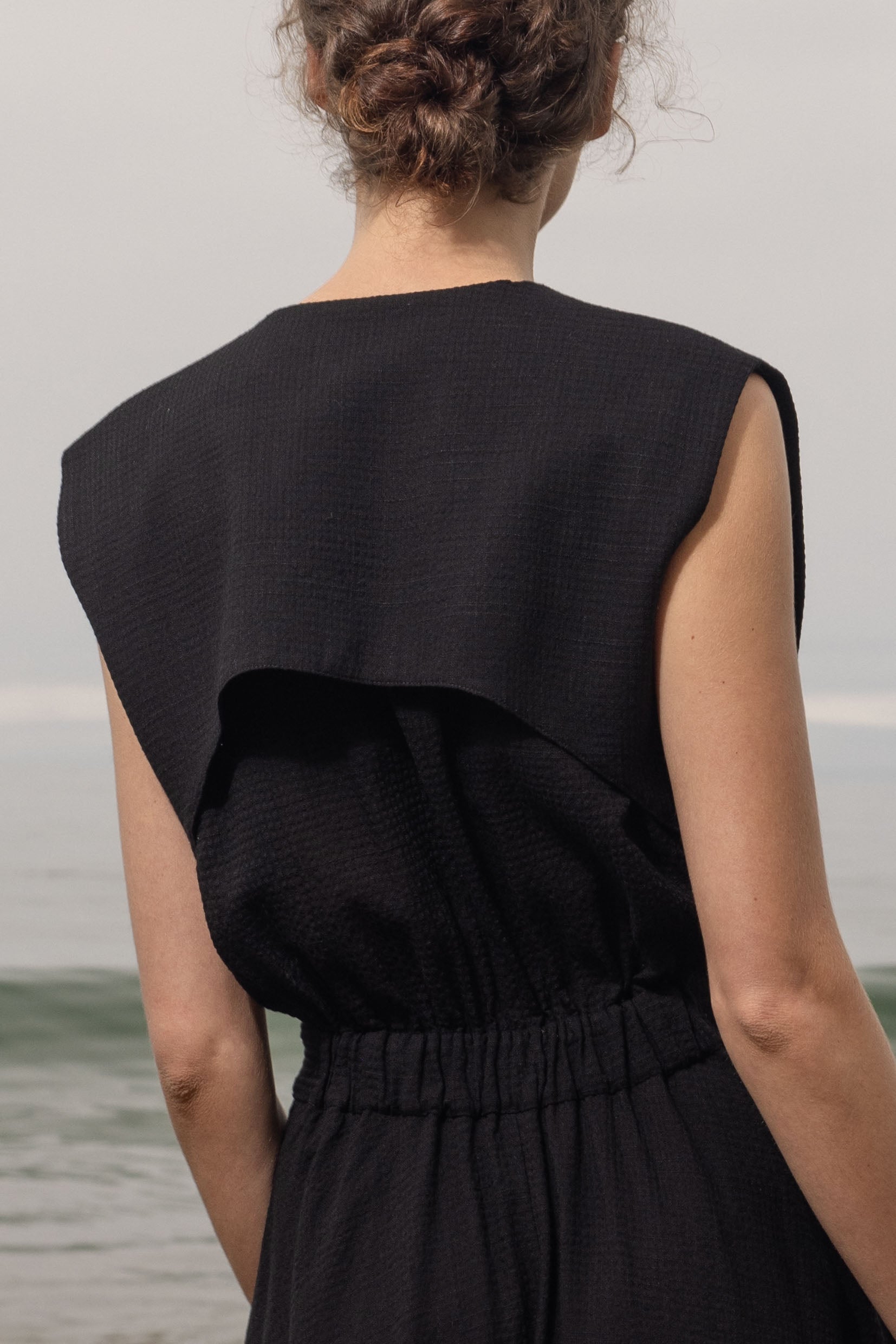 A romantic evolution of our classic silhouette, the Tasya features a timeless A-line shape and thoughtful, sculptural details. The V neckline is framed by a sweetheart-style yoke in both the front and back, adding softness and subtle structure. A crossover waistband at the back nods to our Baptiste, while the elasticized detail ensures comfort and shape. Finished with a covered placket and side pockets, this is a versatile, feminine piece designed for everyday elegance.