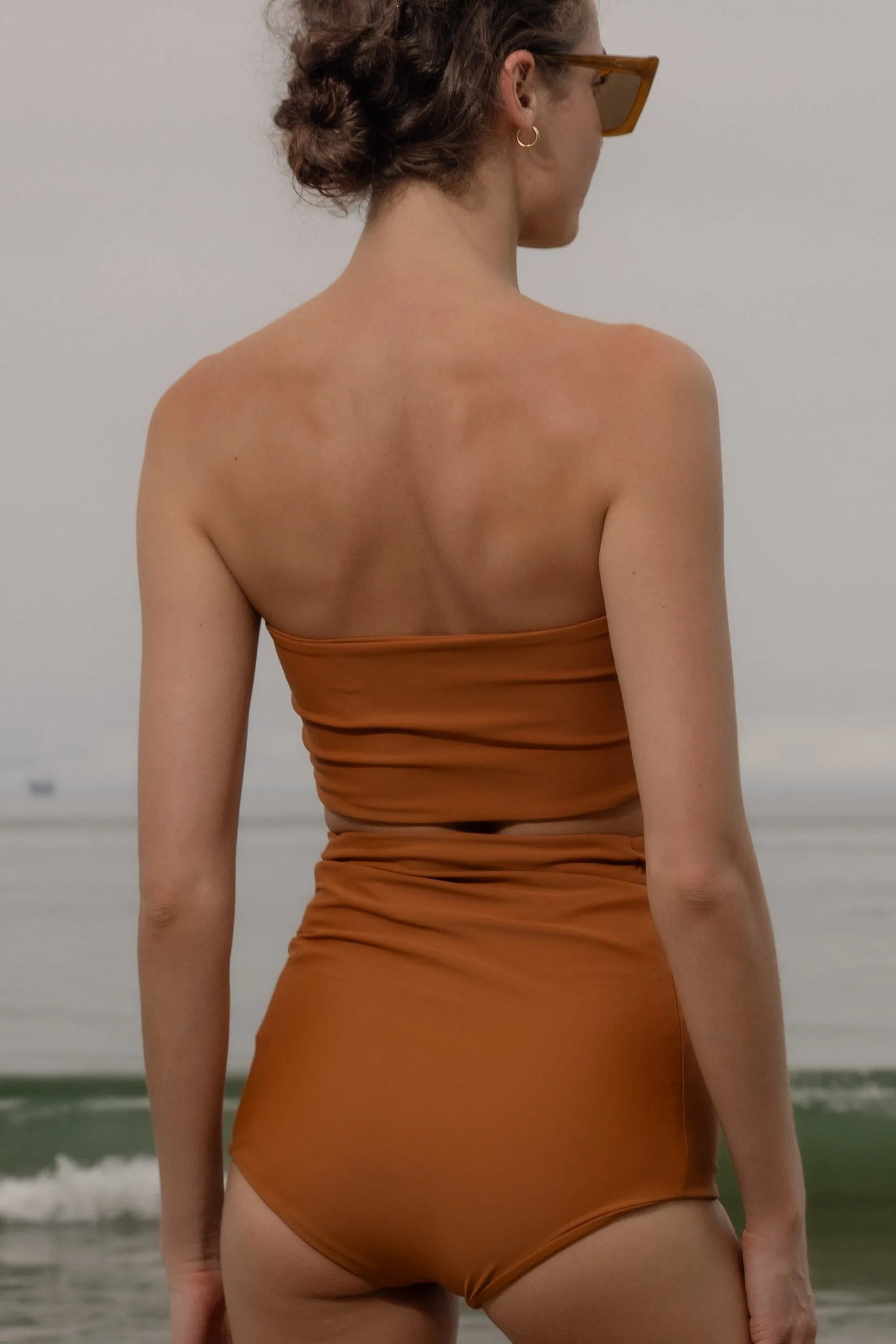 The Vicent Bikini Top is a clean, minimalist bandeau crafted from luxe nylon-spandex tricot and fully lined in self fabric for comfort and support. Designed to stay in place, this pull-over style features soft elastic at the hems for a secure fit, no ties, no fuss.